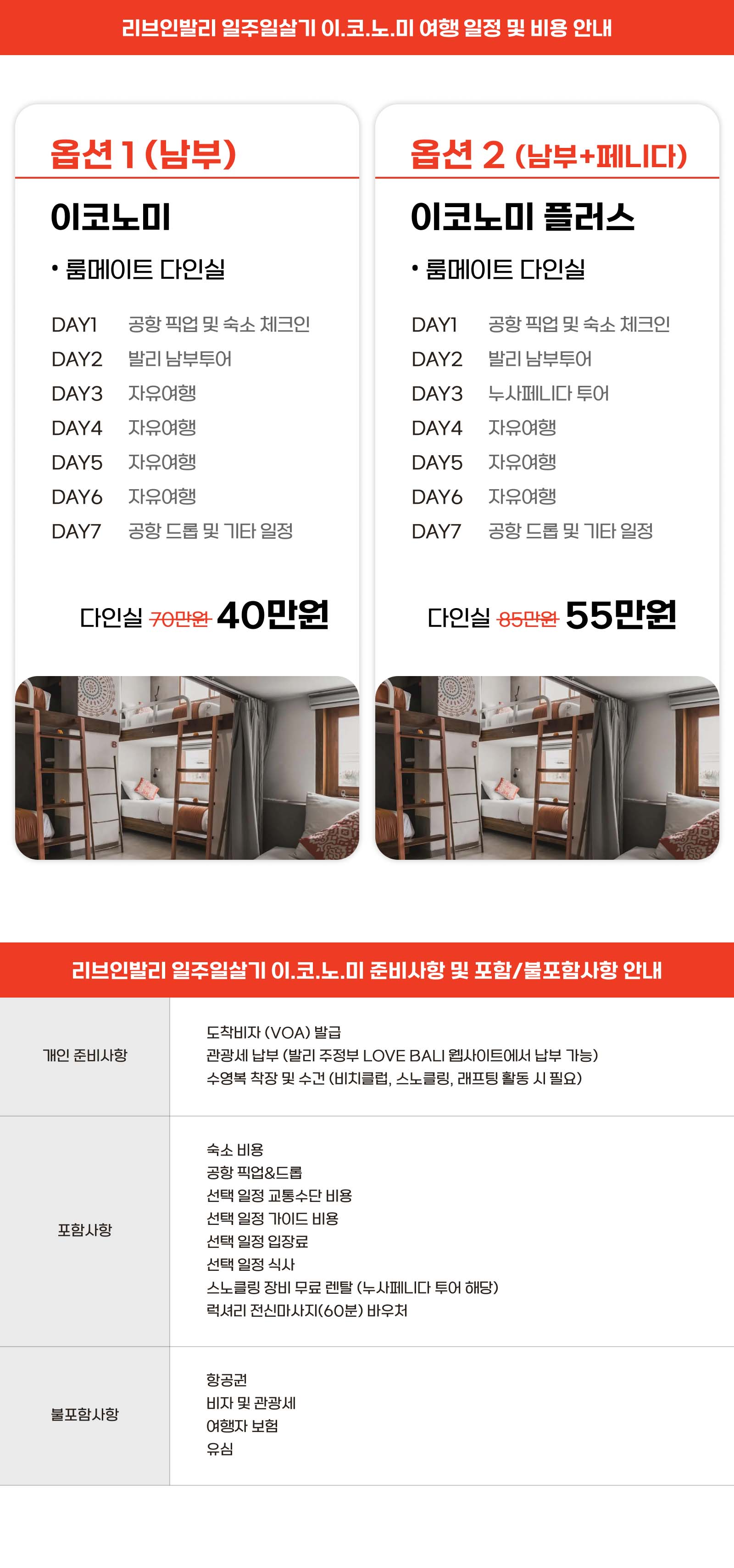* 옵션 2 (남부+누사페니다) 선택 시, 포함된 일정입니다.