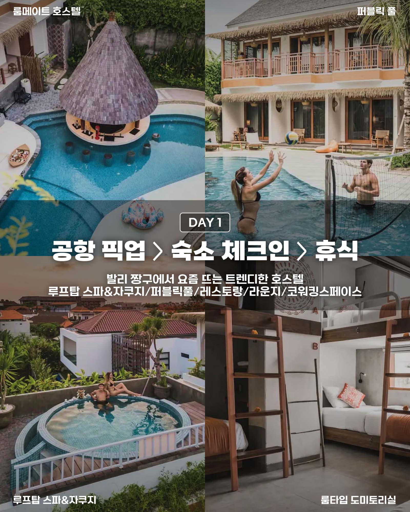 숙소, 공항 이동 서비스, 마사지 바우처가 기본 제공되며, 발리 남부 및 누사페니다 옵션 중 원하는 일정을 선택해 맞춤형으로 즐길수 있는 실속형 발리 일주일 살기!