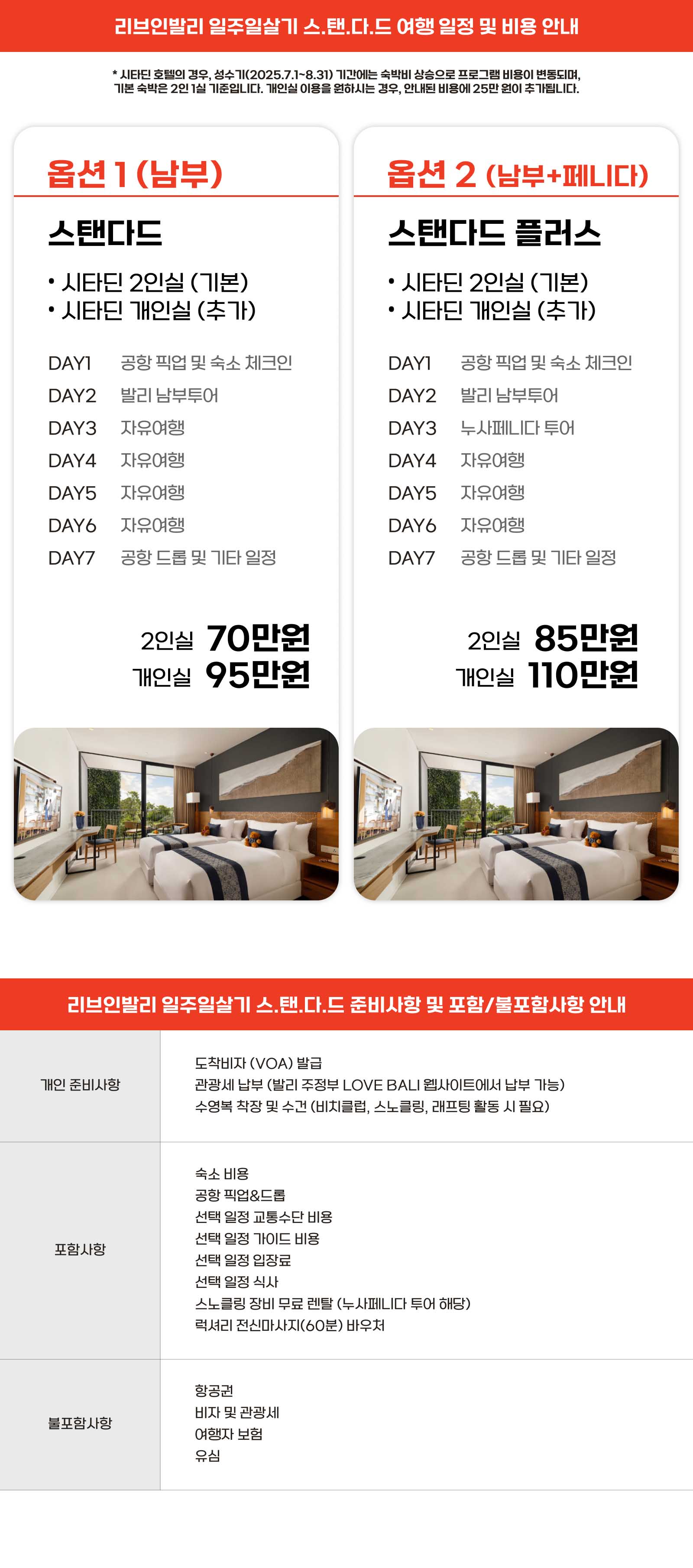 * 옵션 2 (남부+누사페니다) 선택 시, 포함된 일정입니다.